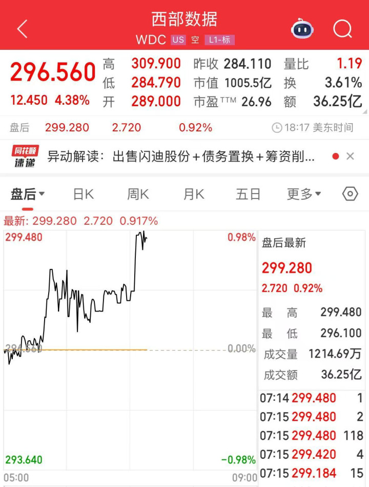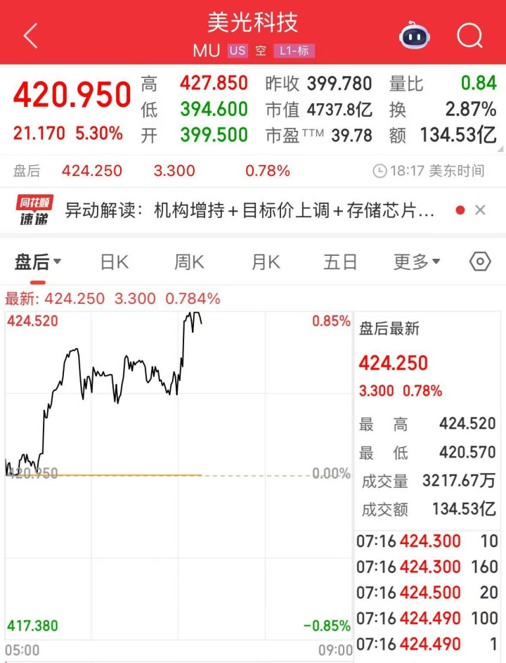 存储概念股走强,芯片巨头美光科技涨超5%,西部数据涨超4%。